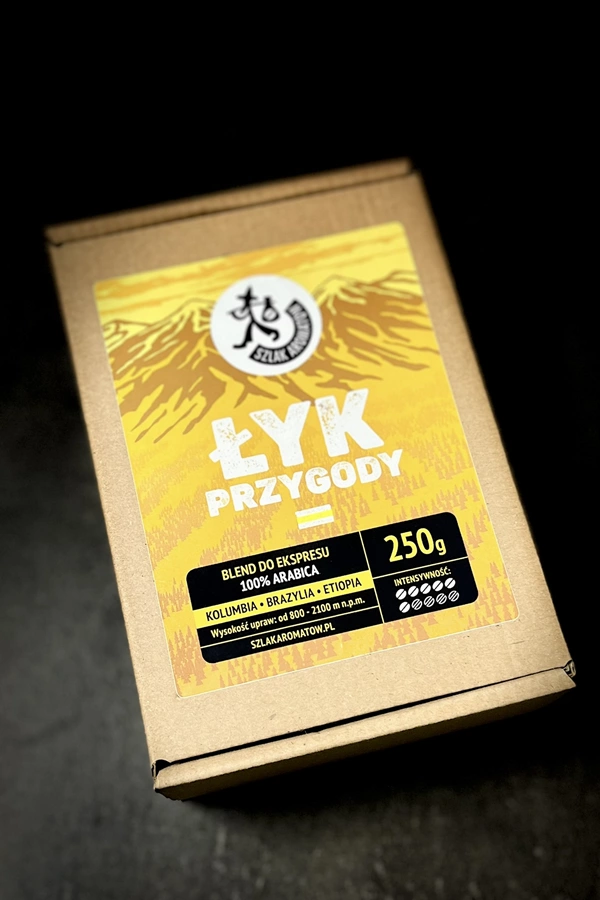 Łyk Przygody to kawa dla poszukiwaczy przygód, którzy cenią sobie pełny charakter i bogactwo aromatów. Połączenie ziaren z Brazylii Yellow Bourbon, Kolumbii i Etiopii Yirgacheffe daje intensywny smak z wyraźnymi nutami czekolady, miodu, suszonych owoców i orzechów, a soczyste brzoskwinie i delikatny akcent winny dopełniają doznania smakowe. Blend doskonale sprawdza się w ekspresach automatycznych, kawiarce, tygielku czy metodach przelewowych – prawdziwy kompan każdej przygody na szlaku i przy ognisku.